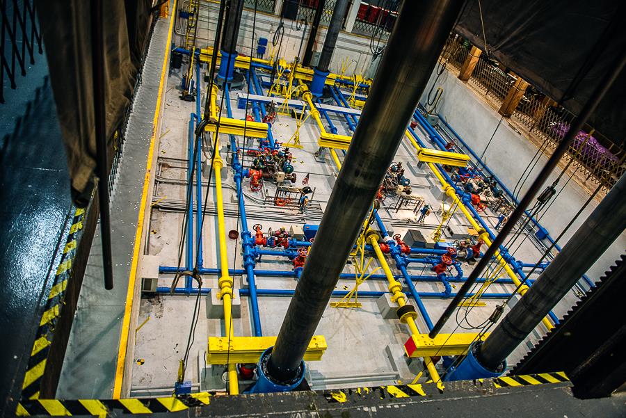 Die Rohre auf obigem Bild sind das Hydrauliksystem der Bühne.