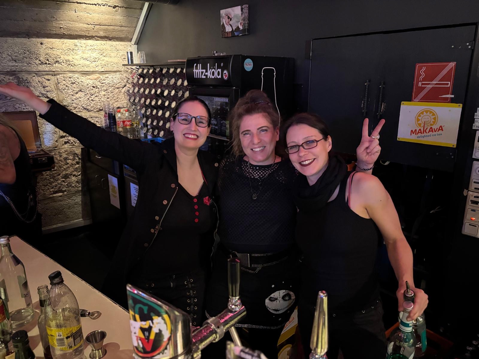 Und genau da liegt das eigentliche Herz des Abends: Es war fast wie beim Wave-Gothik-Treffen nur familiärer. Viele unheimlich liebe, authentische Menschen, eine große dunkelbunte Familie, die von der Gastgeber-pmk-Truppe u.a., das herzlichste Bardamenteam ever, Lisa & Roli und natürlich alle anderen vom Kassier bis zum Verkaufsstand http://www.BelvaBones.com mit einzigartigen Gothic-Accessoires spürbar fürsorglich durch den Abend begleitet wurde. Nicht aufdringlich, nicht geschniegelt, sondern herzlich aufmerksam, echt.