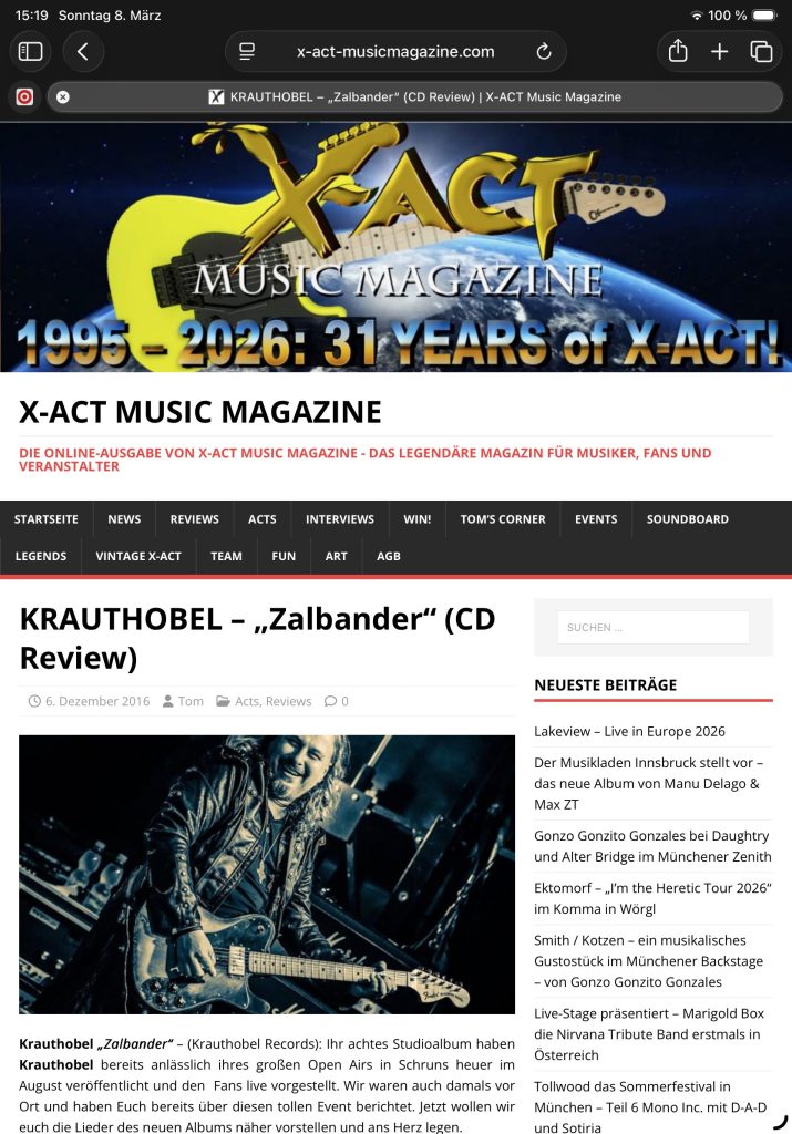 Über die Jahre haben wir auf X-Act immer wieder über Krauthobel berichtet. 1998 besuchten wir Jürgen Ganahl und Christoph Bitschnau im Studio. 1999 erhielt Krauthobel für ihre CD „Die drett“ den X-Act Award für die CD des Jahres und auch sonst haben wir immer wieder über die Vorarlberger Band berichtet.