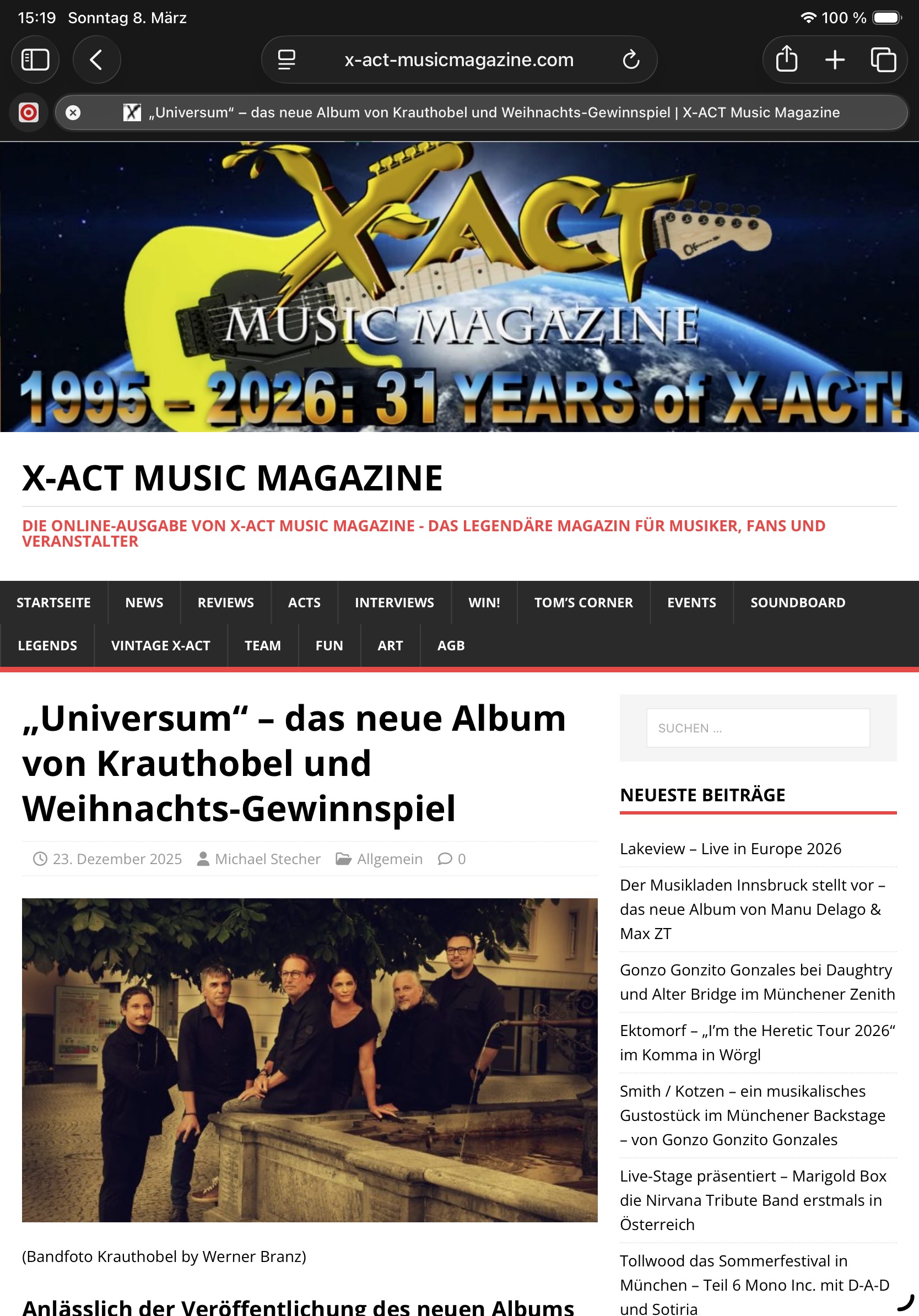 Wer mehr über das neue Album lesen will, wir haben Christoph Bitschnau dazu interviewt. Den Bericht findet Ihr auf X-Act (Bericht vom 23.12.2025). Auf dem Album „Universum“ findet Ihr wieder alles, was die Fans an Krauthobel so schätzen – ruhige Lieder, Partysongs und rockige Nummern wechseln sich ab und ergänzen sich. Und natürlich ist auch ihr aktueller Hit „Bist Du glücklich“ auf der Scheibe enthalten.