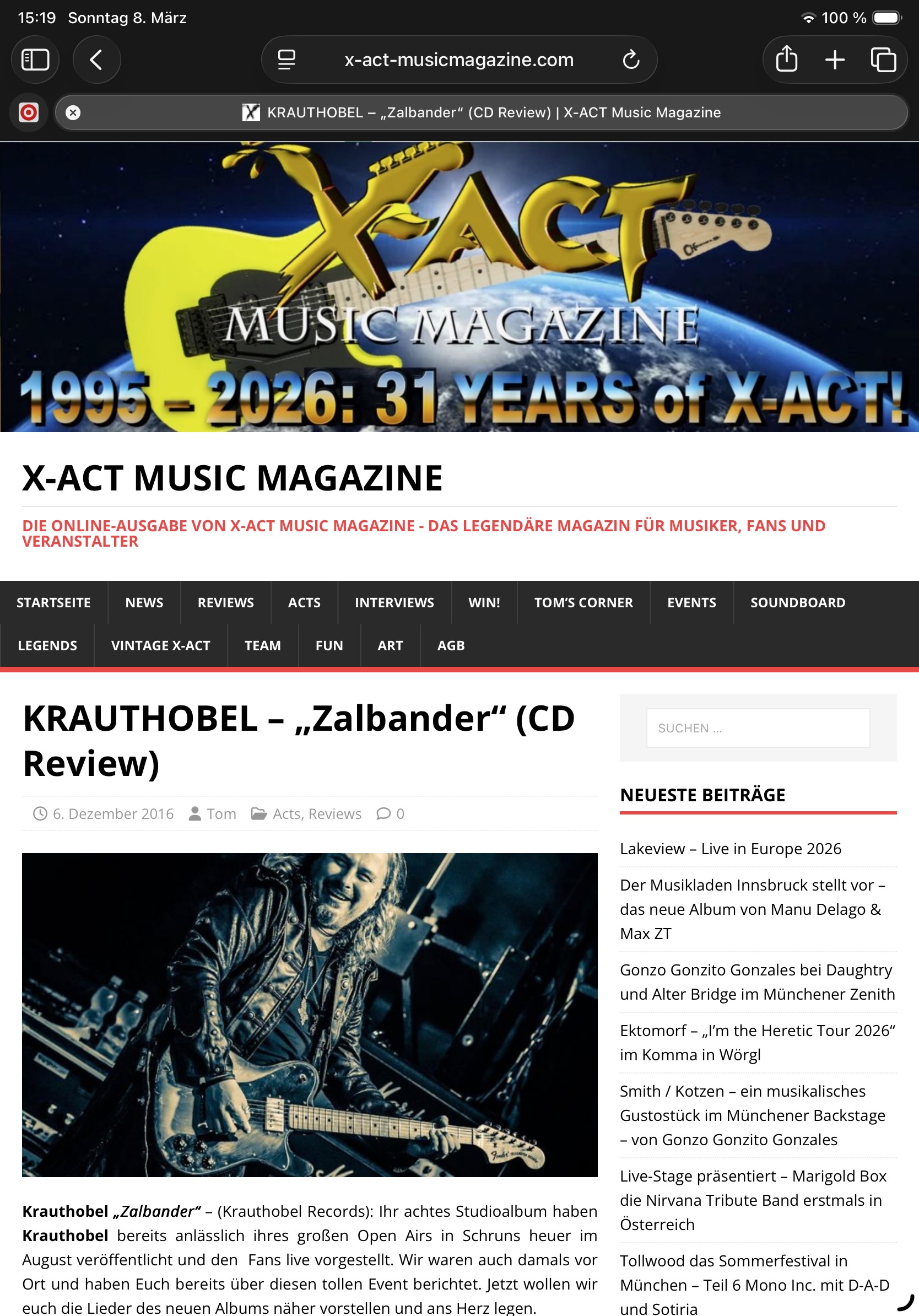 Über die Jahre haben wir auf X-Act immer wieder über Krauthobel berichtet. 1998 besuchten wir Jürgen Ganahl und Christoph Bitschnau im Studio. 1999 erhielt Krauthobel für ihre CD „Die drett“ den X-Act Award für die CD des Jahres und auch sonst haben wir immer wieder über die Vorarlberger Band berichtet.