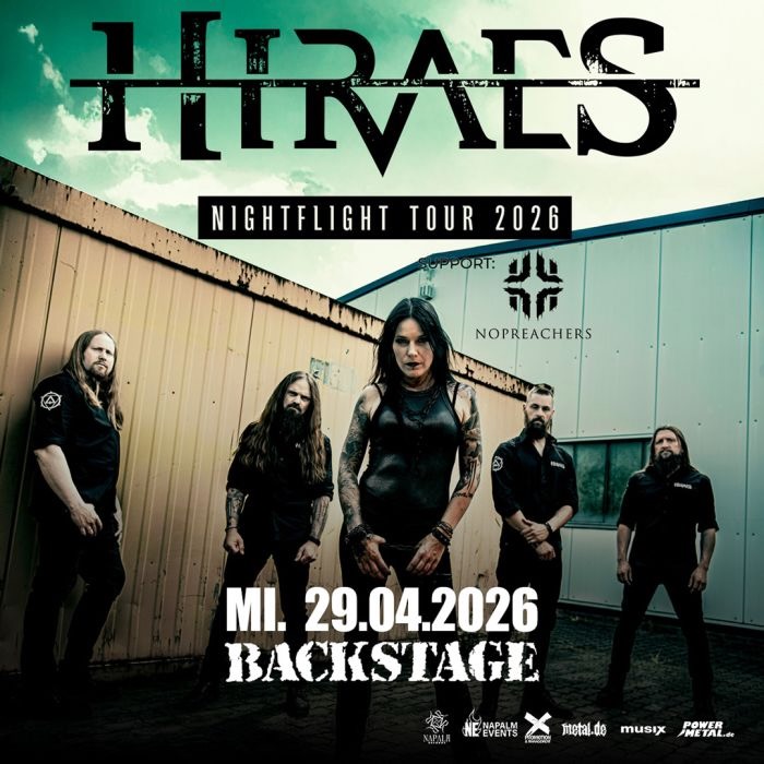 Mittwoch, 29. April 2026 – Hiraes gastieren im Rahmen ihrer „Nightflight Tour 2026“ in der Backstage Halle in München. Hiraes entstand aus der Band Dawn of Disease und starteten mit der Sängerin Britta Görtz vor etwa fünf Jahren durch. Auf der aktuellen Tour werden sie ihre Fans wieder mit ihrem Melodic-Death-Metal begeistern, auf der Setlist finden sich die Songs ihrer beiden Alben „Solitary“ und „Dormant“. Als Support fungieren Nopreachers. Tickets unter https://www.backstage.eu