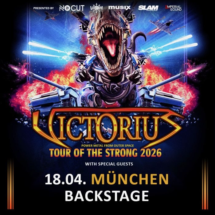 Samstag, 18. April 2026 – Victorius mit ihrer „Tour of the Strong 2026“ im Backstage Club in München. Bei diesem Konzert mit dabei sind Aeon God und Terra Atlantica. Die deutschen Power-Metal-Helden bieten ihren Fans einen Konzertabend voller Highspeed-Riffs, großartiger Hymnen und der für die Band typischen Phantasy-Welten. Nähere Infos unter https://www.backstage.eu